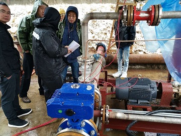 在接近八小時艱苦卓絕的戰(zhàn)斗下,我公司新完成的三臺平衡式泡沫比例混合裝置順利通過了天消所同志的檢驗,